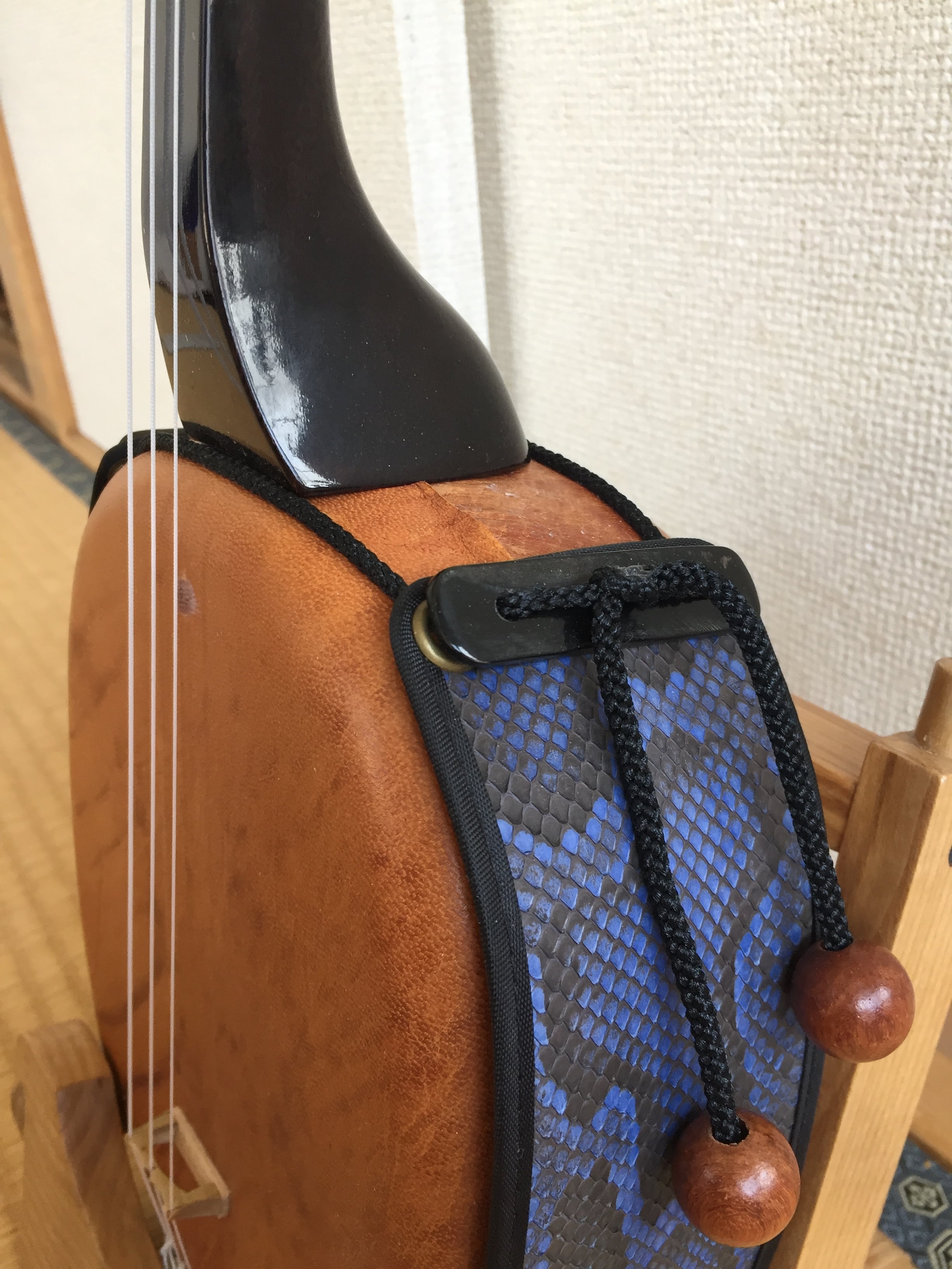 えぞ鹿の皮を貼りました。 深く優しい音色でございます。 メンテナンスフリーでございます。 タガヤサン製
