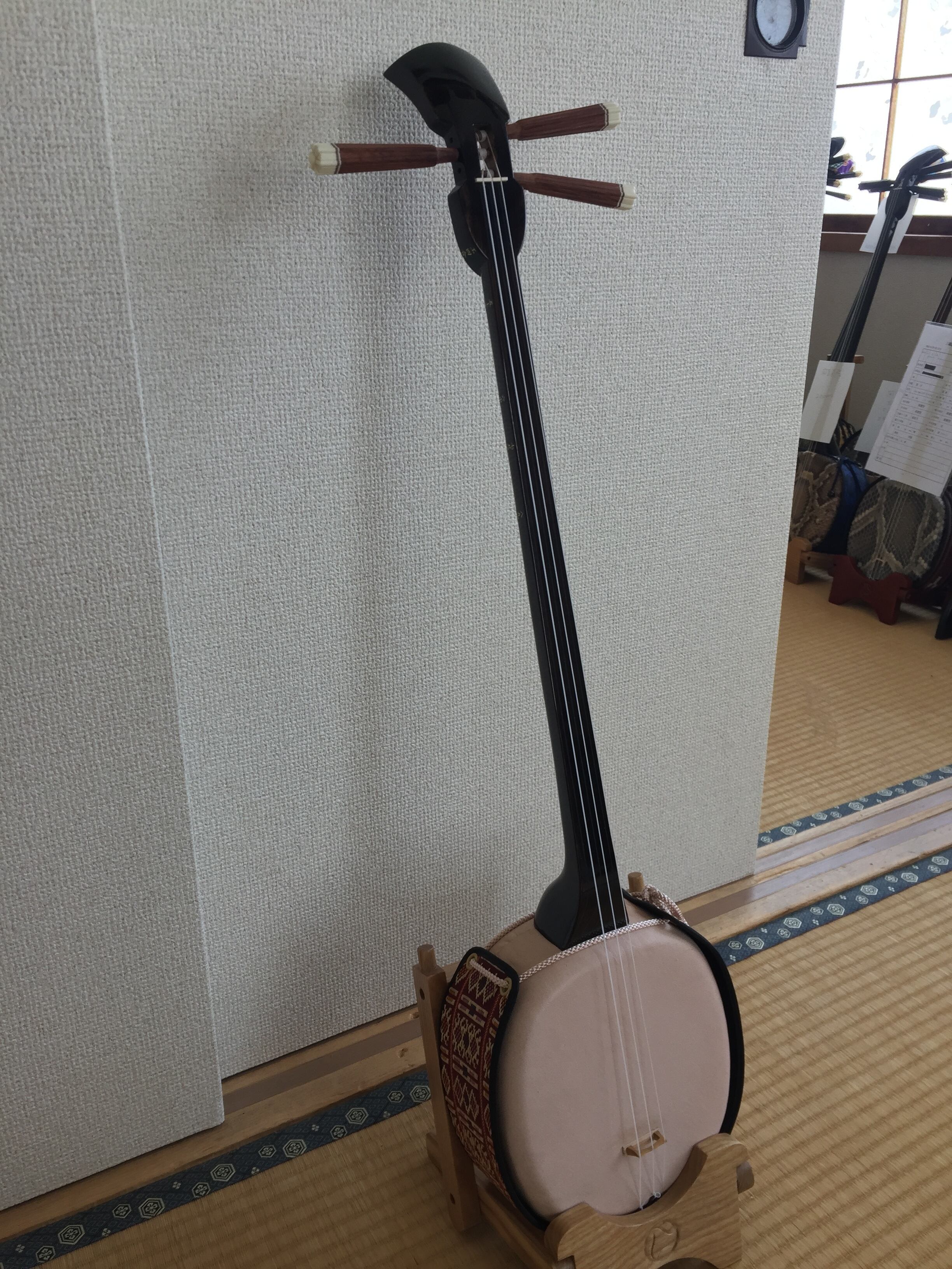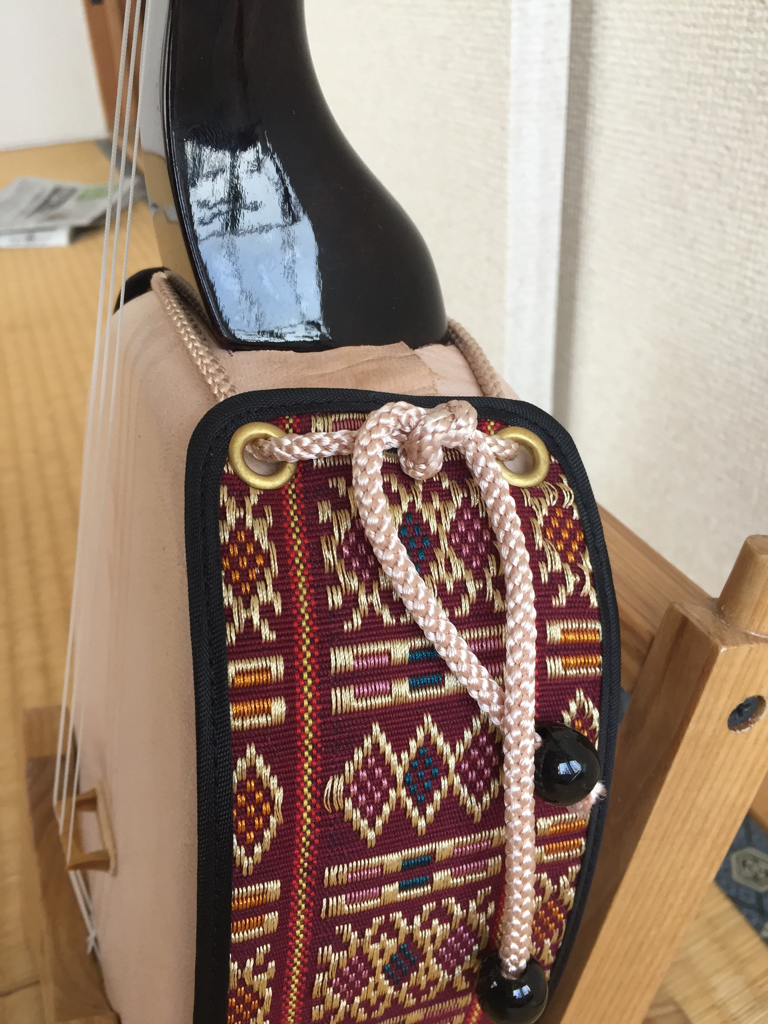 えぞ鹿の皮を貼りました。 深くまろやな優しい音色でございます。 メンテナンスフリーでございます。 タガヤサン製